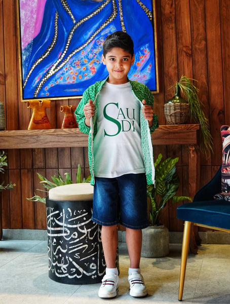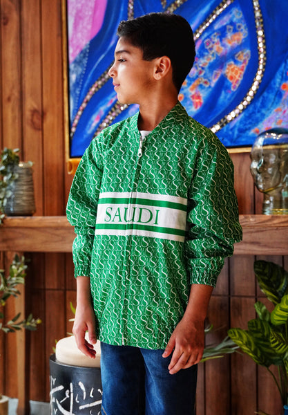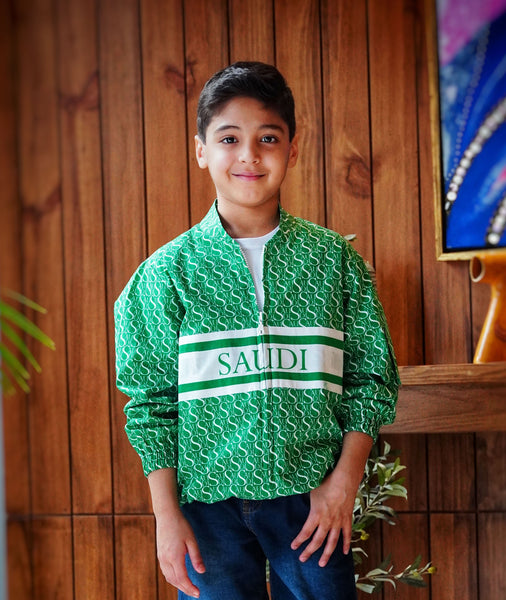 Exclusive Jacket for Saudi National day. Unique fabric design made with allover Saudi monogram