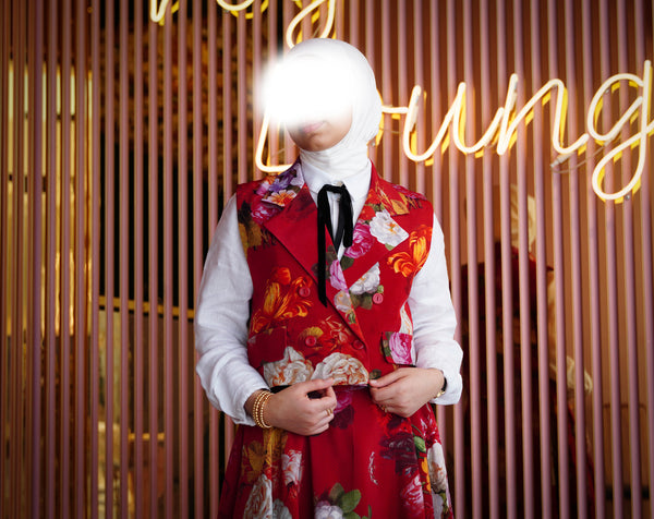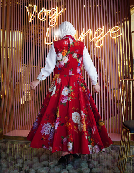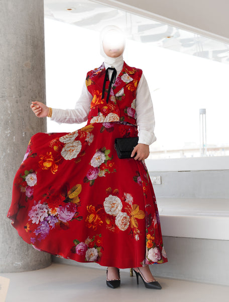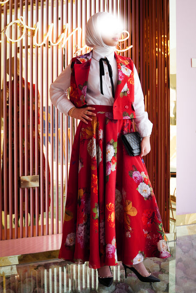 Elegant Set consists of Vest & Skirt designed with an exclusive fabric inspired from vintage flowers