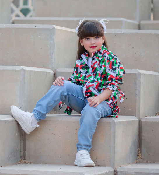 Special jacket design that has the names of the Emirates written allover the jacket.