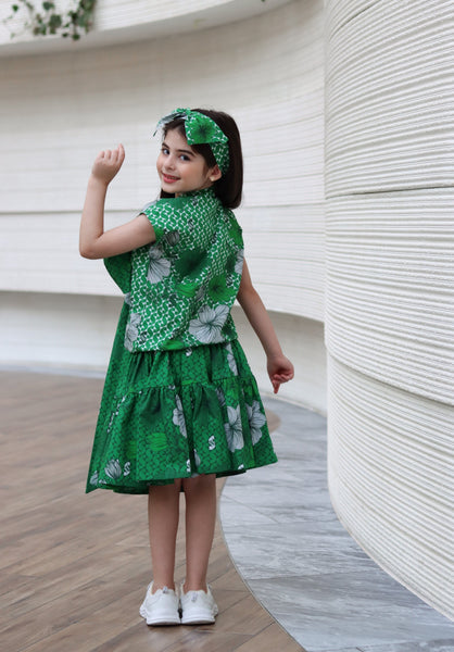 Set consists of Sleeveless Jacket, Skit, Sleeveless TShirt, and Hair Band.