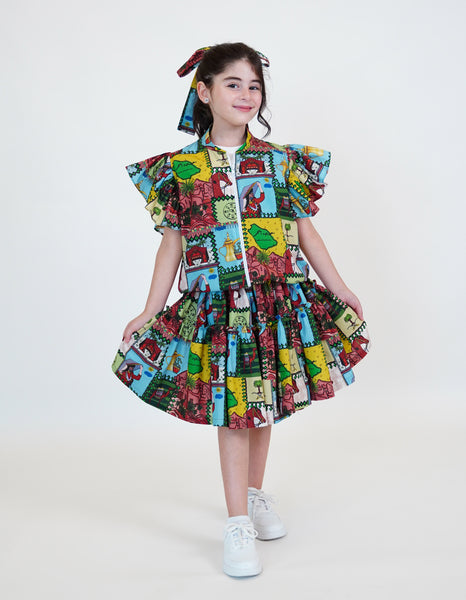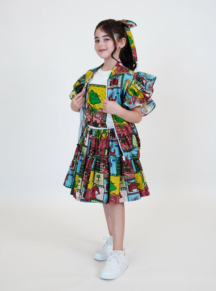 Set consists of Sleeveless Jacket, Skirt, TShirt, and Hair Band.
