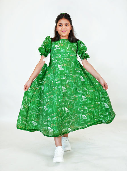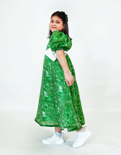 Exclusive dress for Saudi National day. Unique fabric made with allover Floral design and a hair band.