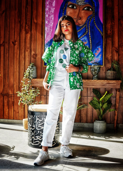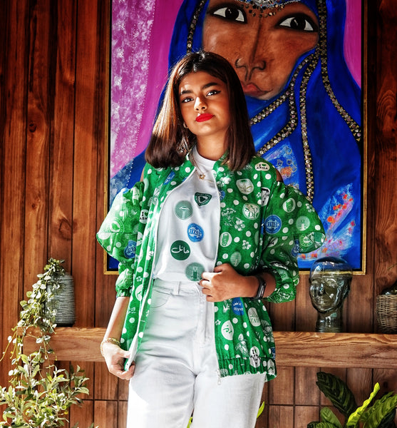 Exclusive Jacket for Saudi National day. Unique fabric design made with allover Saudi printing