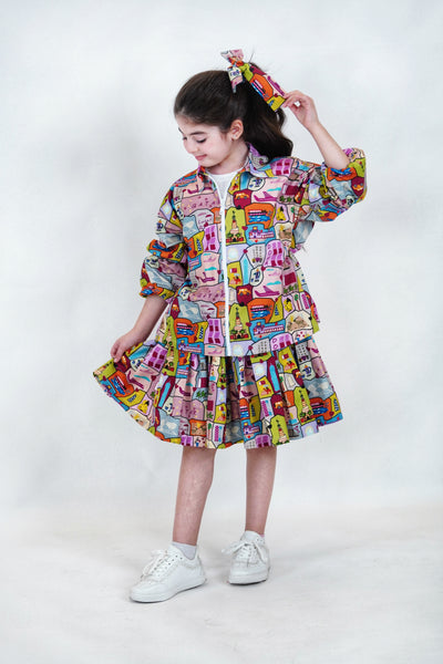 تتكون البدلة من ٤ قطع جاكيت و تنورة و تي-شيرت و ربطة للشعر