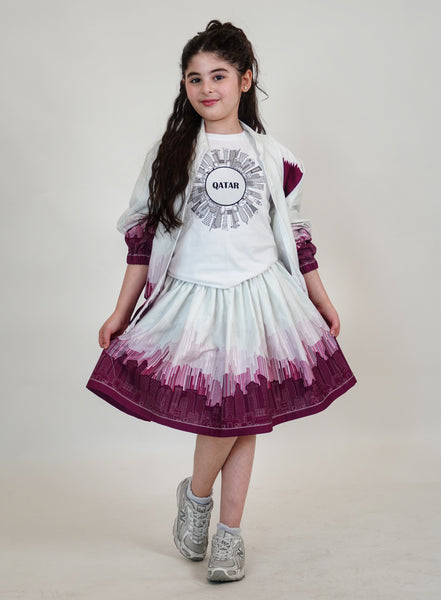 Exclusive 4-piece set for Qatar 2025 National day. Unique fabric design made with allover Qatar Skyline design
