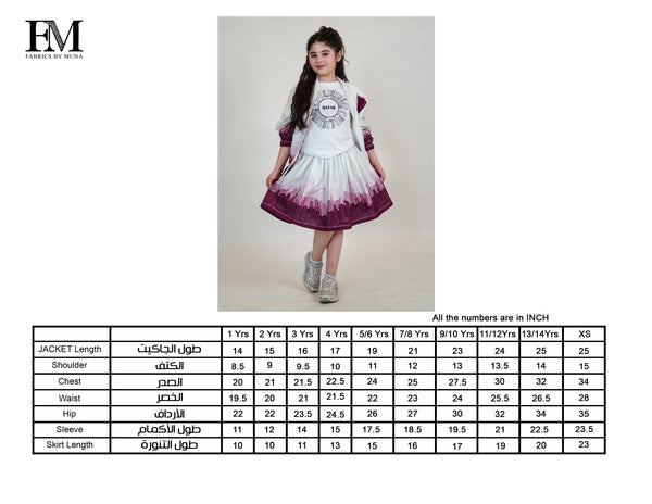 تتكون البدلة من ٤ قطع جاكيت و تنورة و تي-شيرت و ربطة للشعر