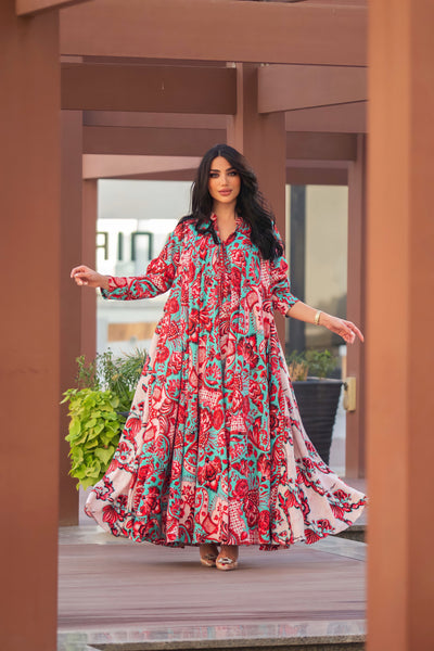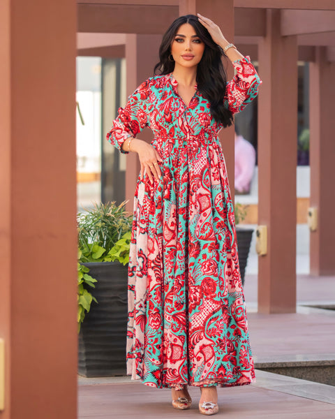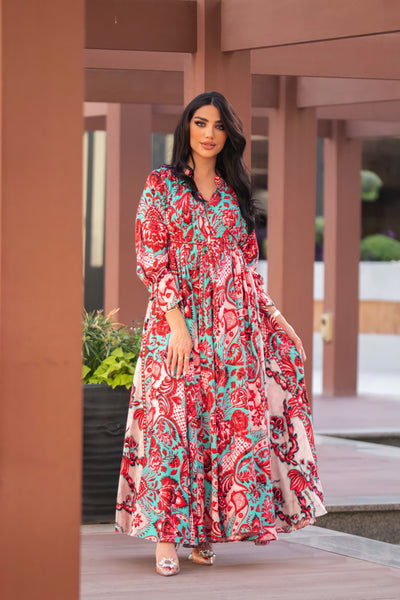 Exclusive dress made of specially designed fabric that is inspired from Tuscany Pottery Art