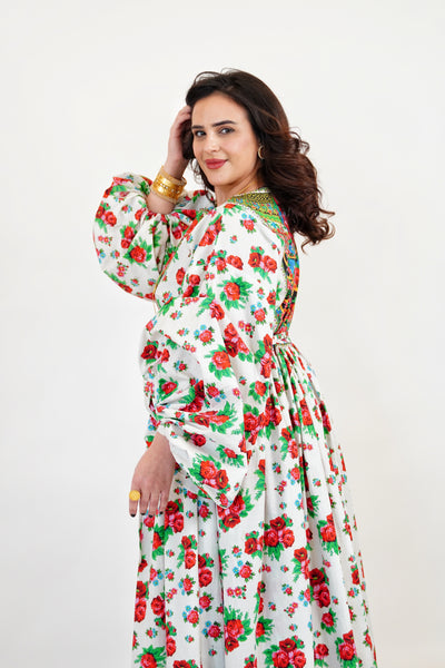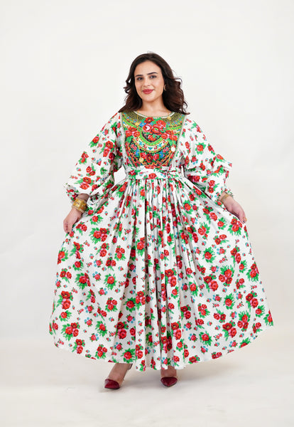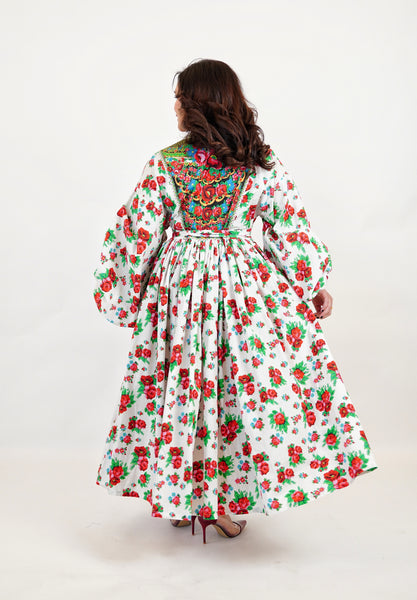 Exclusive dress made of specially designed fabric that is inspired from classic embroidery theme